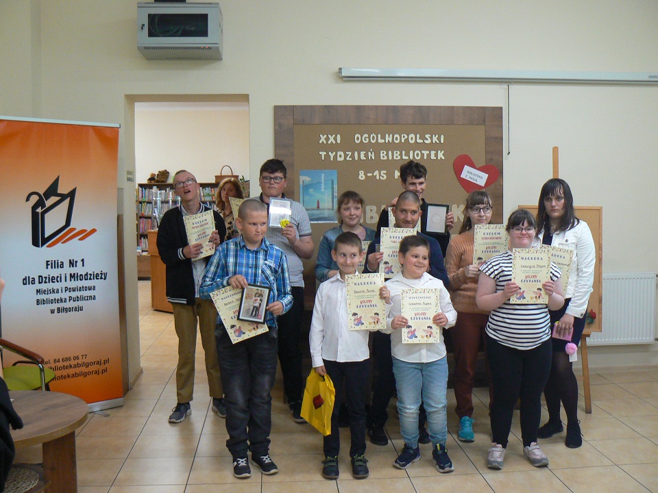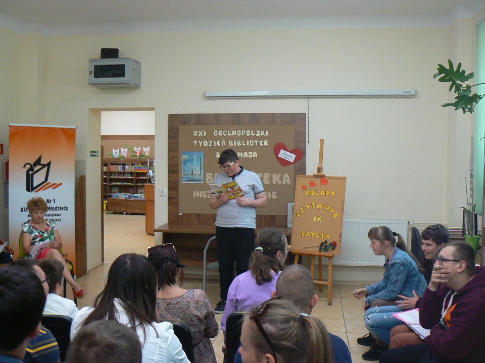 Jak co roku w Filii Nr 1 dla Dzieci i Młodzieży odbył się konkurs czytelniczy "Kolory Czytania". Była to już IX edycja, skierowana do dzieci i młodzieży niepełnosprawnej z Zespołu Szkół Specjalnych w Biłgoraju. Uczniowie czytali utwory polskich poetów dziecięcych.