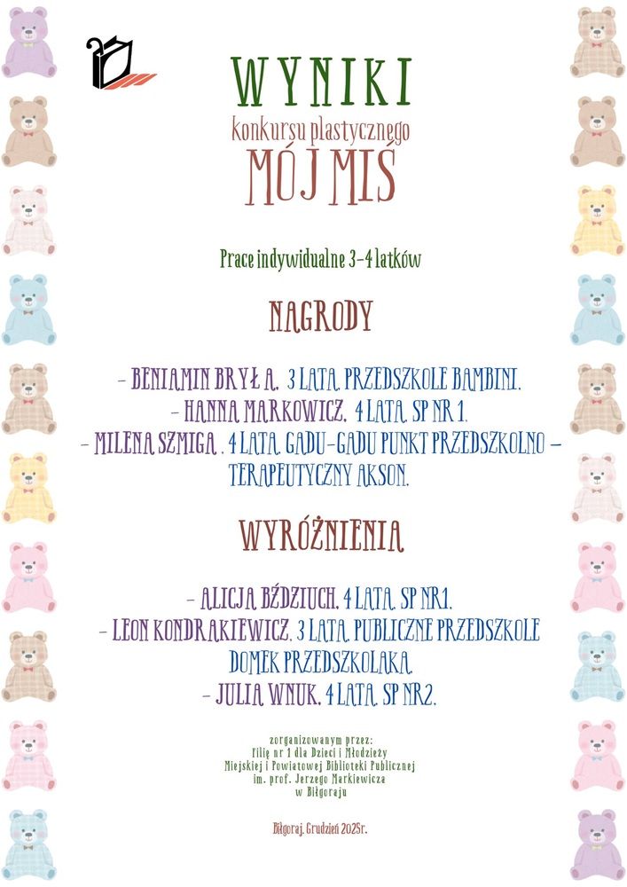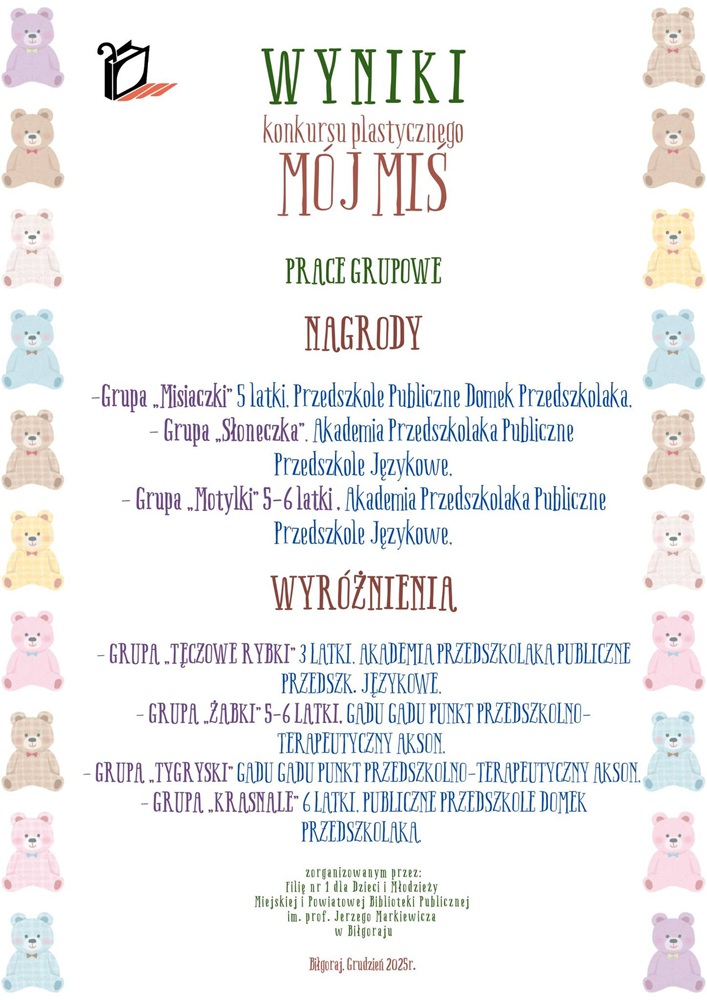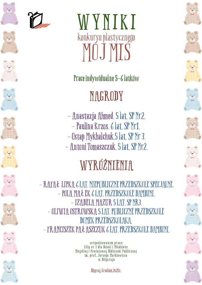 W Filii bibliotecznej dla Dzieci i Młodzieży podsumowano konkurs plastyczny "Mój Miś"- XVI edycję.