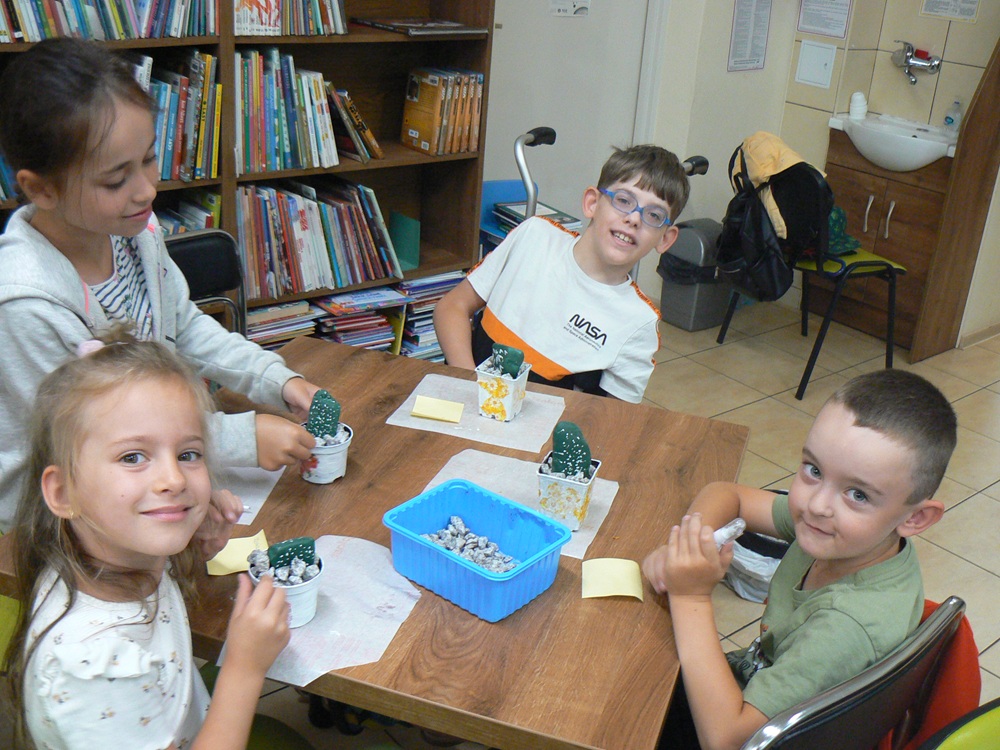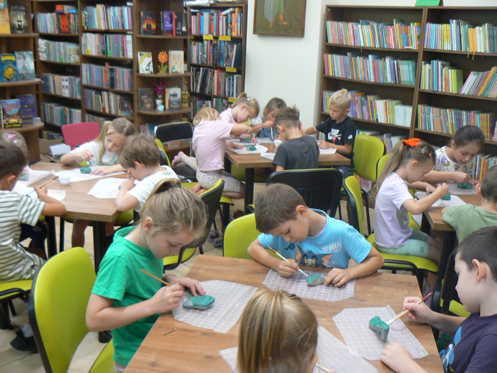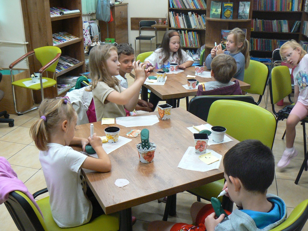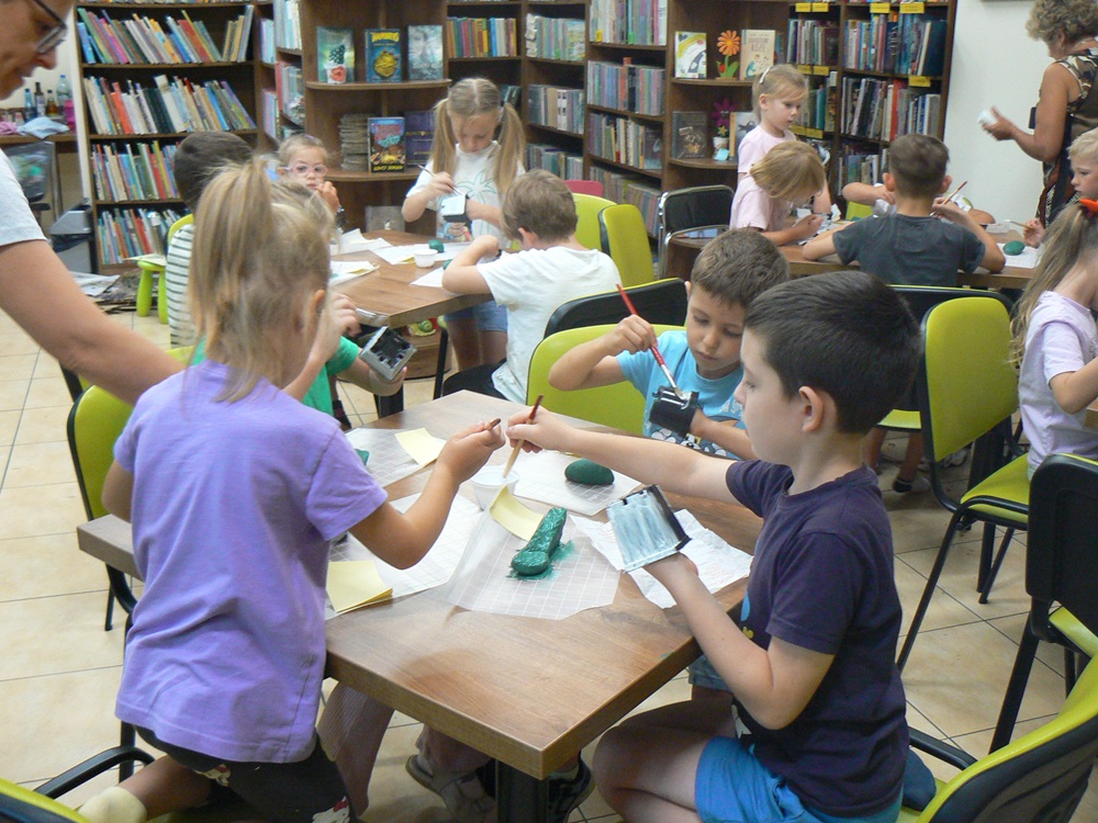 Jak co roku w Filii nr 1 dla Dzieci i Młodzieży odbywała się akcja "Lato w bibliotece". Dzieci słuchały głośnego czytania opowiadań i bajek. Odbywały się zajęcia plastyczne, podczas których uczestnicy tworzyli kolorowe motyle, układali kompozycje z suszonych, letnich kwiatów łąk, czy też tworzyły kaktusy. Zajęcia były przeprowadzone z wykorzystaniem różnych sposobów tworzenia prac: malowanie, wycinanie, przyklejanie, praca z kamieniami, decupage.