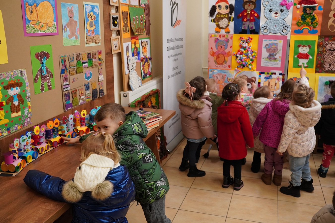 Tuż przed świętami Filię dla Dzieci odwiedziły najmłodsze przedszkolaki z Samorządowego Przedszkola Nr 1. Grupa II z Panią Kingą oraz grupa z XII z panią Basią. Dzieci zapoznały się z księgozbiorem dziecięcym oraz zasadami wypożyczania książeczek. Ogromnym zainteresowaniem cieszyła się wystawa "Mój Miś".