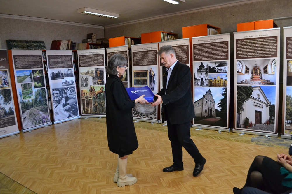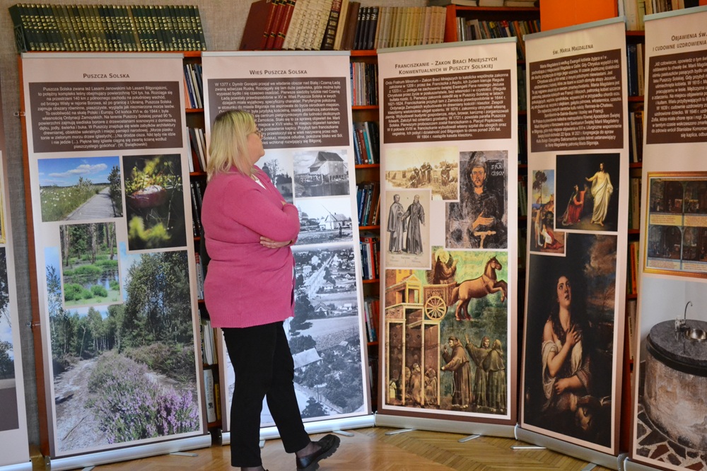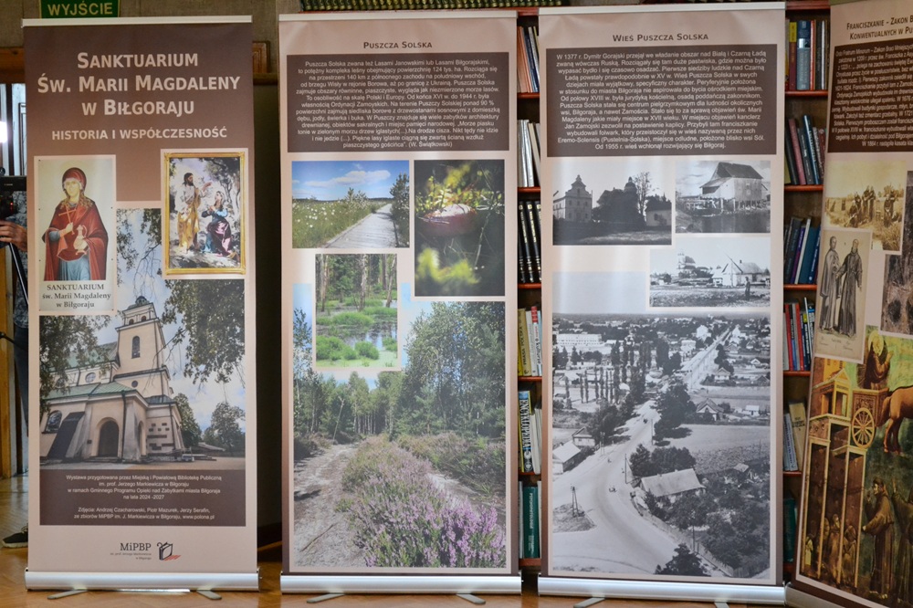 18 listopada 2025 r. w czytelni Biblioteki odbył się wernisaż wystawy „Sanktuarium św. Marii Magdaleny w Biłgoraju. Historia i współczesność.” Wystawa wykonana przez naszą Bibliotekę została zrealizowana w ramach Gminnego Programu Ochrony Zabytków Miasta Biłgoraja na lata 2024 -2027. Wykonano ją w postaci 11 plansz (roll-up). Plansze zawierają opisy i zdjęcia dotyczące między innymi takich tematów jak: wieś Puszcza Solska, Zakon Braci Mniejszych Konwentualnych w Puszczy Solskiej, historia parafii p.w. św. Marii Magdaleny, architektoniczne obiekty zabytkowe Sanktuarium. Wystawę można oglądać do końca grudnia 2025 r. Istnieje możliwość jej wypożyczenia przez szkoły i instytucje z miasta Biłgoraja i powiatu biłgorajskiego.