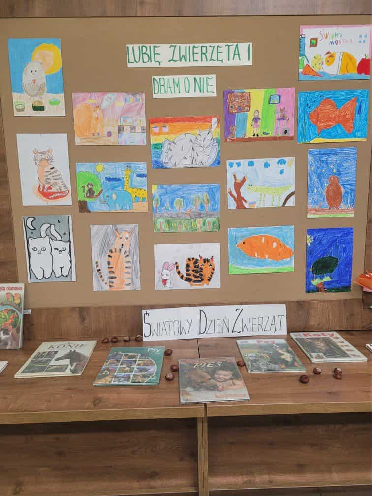 Z okazji Światowego Dnia Zwierząt obchodzonego 4 października w Filii bibliotecznej dla Dzieci i Młodzieży zorganizowano konkurs plastyczny "Lubię zwierzęta i dbam o nie"